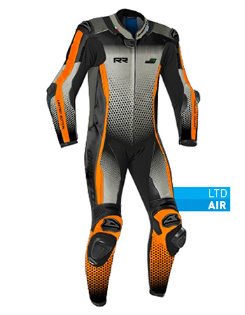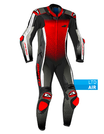 External plates made with a highly resistant polymer and additional titanium inserts, located on the shoulders, elbows and knees. These plates are meant to protect the joints and also reduce friction between the suit itself and the tarmac, which allows to deviate the impact force on nearby wider surfaces.